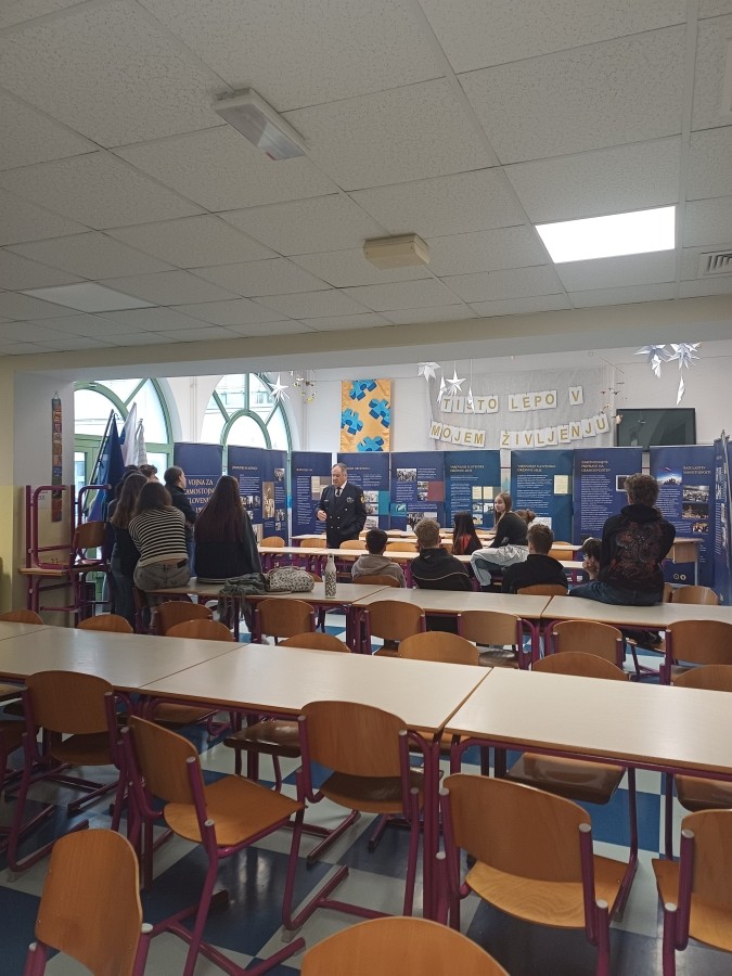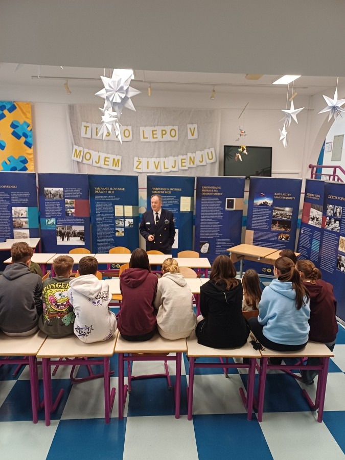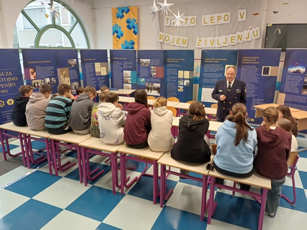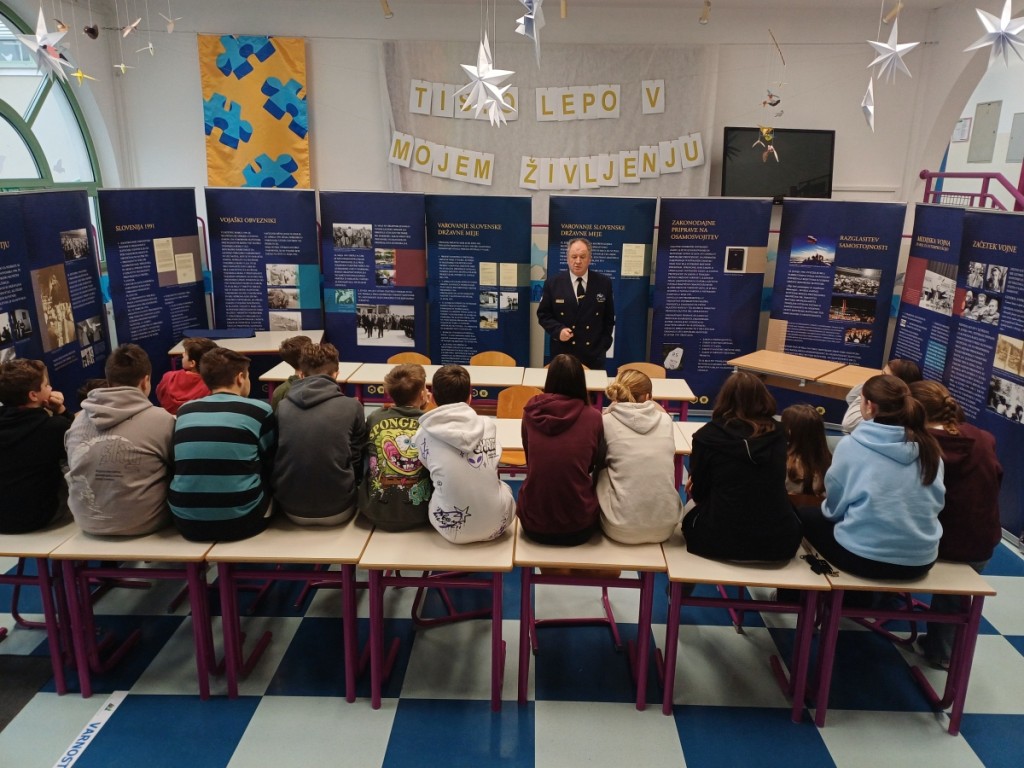 Na osnovni šoli Dobravlje pri Ajdovščini smo v četrtek 15.01.2026 in petek 16.01.2026 opravili predavanje za očence osmih in devetih razrednov. V šoli so trije oddelki 8. razredov in trije oddelki 9. razredov. Učenke in učenci pa tudi nekateri profesorji in zaposleni na šoli so z zanimanjem prisluhnili predstavitvi poti, ki nas je pripeljala do samostojne Slovenije.