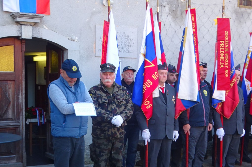 Od tu so se odpravili do spominske plošče ob ustanovitvi IX. Korpusa NOVJ na domačiji pri Skoku. Letos se je slovesnosti prvič udeležila tudi spominska partizanska enota Franc Rozman – Stane, ki deluje v sklopu Kulturno zgodovinskega društva Franc Rozman - Stane iz Ljubljane. Po krajšem oddihu in okrepčilu so na prireditveni prostor prišli praporščaki, nakar je bila zapeta Slovenska himna. Prisotne sta v imenu organizatorjev pozdravila predsednik ZB za vrednote NOB Bovec, Kobarid, Tolmin Rok URŠIČ in predsednik pododbora Tolmin Dušan KOMAR, v imenu KS Gorenja Trebuša pa predsednik KS BITEŽNIK Bojan. Slavnostni govornik je bil predsednik pokrajinskega sveta severnoprimorskih Združenj borcev za vrednote NOB Mirko BRULC. Spomnil je na okoliščine nastanka IX. Korpusa, njegov pomen za Primorsko, opisal nekaj njihovih pomembnejših bitk. Posebej je poudaril, da se ne sme zgodovinskih dejstev spreminjati in tega tudi ne smemo dovoliti. Neglede na vse poskuse bodo vedno ostali kolaboranti in izdajalci na napačni strani zgodovine. Igor VEZOVNIK in URŠIČ sta pod spominsko ploščo položila venec. Pred zaključkom je za besedo zaprosil še predstavnik OZSČ Laško – Radeče ZEMLJIČ Konrad, ki je podal vzporednice med IX. Korpusom na Primorskem in XIV. divizijo na Štajerskem. Prireditev je bila zaključena s pesmijo Vstajenje primorske. Kot vsako leto so za izvedbo kulturnega dela programa poskrbeli pevci MPZ Justin KOGOJ iz Dolenje Trebuše in učenke OŠ Dušan MUNIH iz Mosta na Soči.