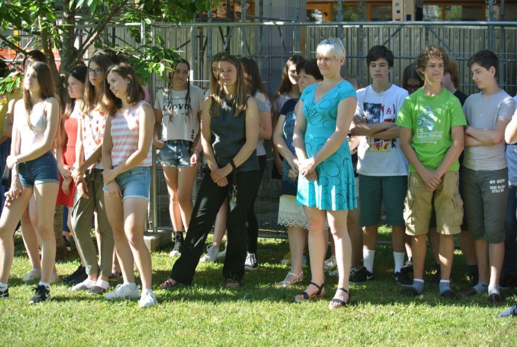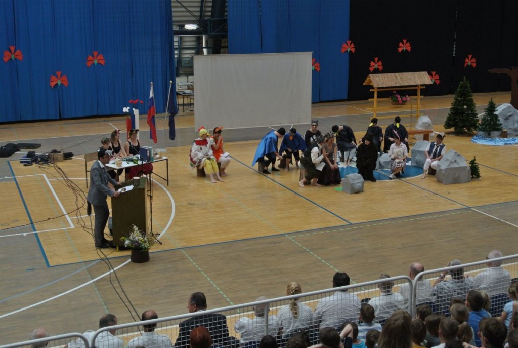 Ob 9. uri pa bo v Modri dvorani potekala proslava pozdrav domovini in koncu šolskega leta, ki jo pripravljajo učenci in učitelji Osnovne šole Idrija.: Zbrane sta nagovorila Tomaž Vencelj, župan občine Idrija. In ravnateljica osnovne šole Idrija.