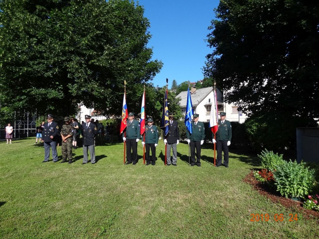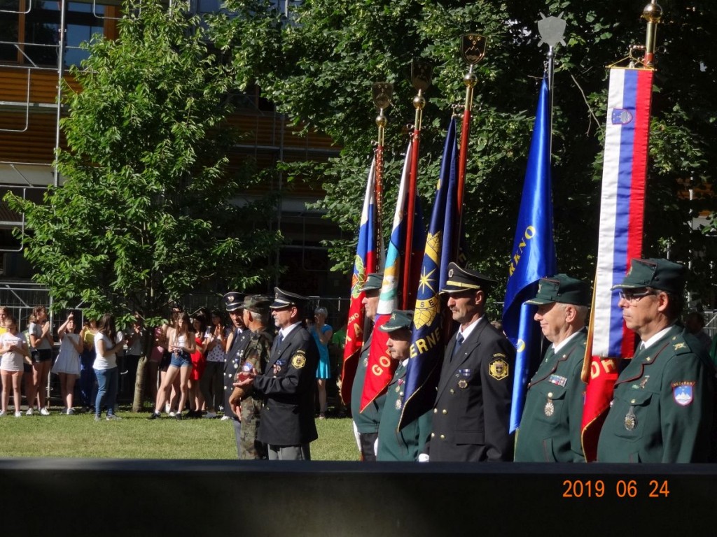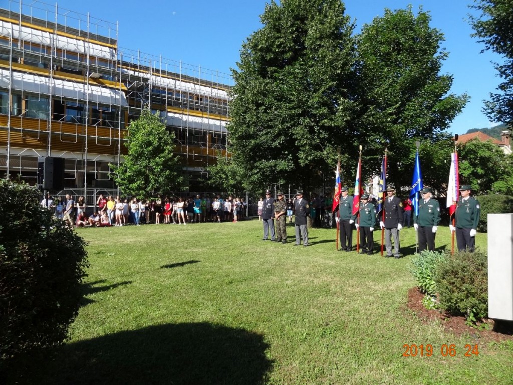 V Idriji smo se Dnevu državnosti v ponedeljek 24.6.2019. Svečan dogodek je potekal v dveh delih. Ob 8,30. uri smo veterani OZVVS Idrija Cerkno in veterani Društva veteranov SEVER Severne Primorske na krajši slovesnosti v spominskem parku osamosvojitve Slovenije pred OŠ Idrija na drog dvignili Slovensko zastavo. Navzoče sta pozdravila Župan Občine Idrija Tomaž Vencelj in predsednik OZVVS Idrija Cerkno Marjan Platiše.