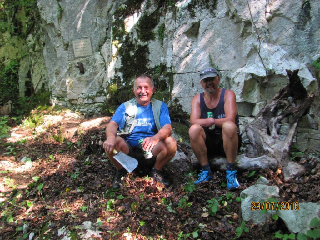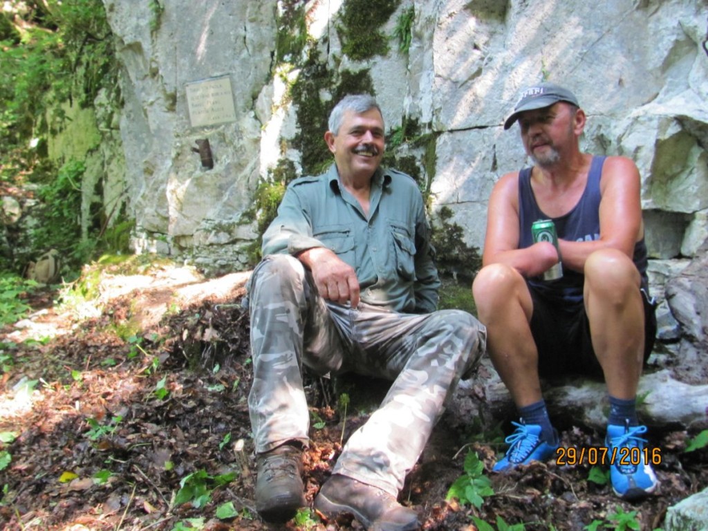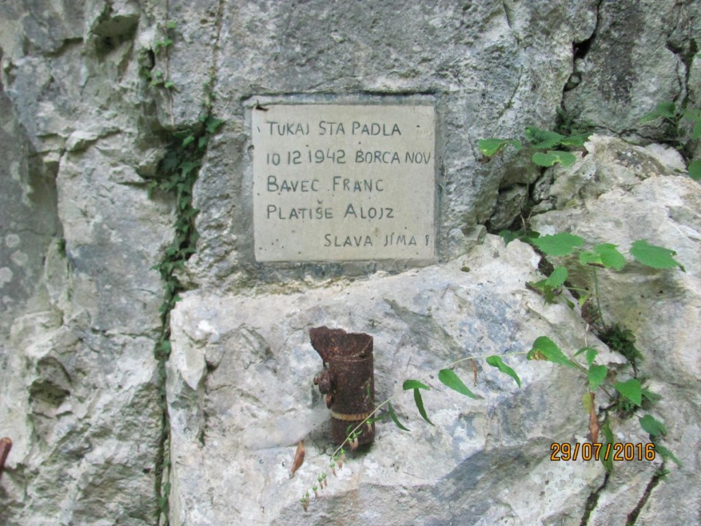Dne 29.07.16 smo, v skladu z dogovorom o sodelovanju z ZB za vrednote NOB Tolmin, odšli v Žlebi pri vasi Ročinj oziroma nad vasjo Slap ob Idrijci. Do plošče smo šli peš okoli 30 minut iz vasi Slap ob Idrijci, saj na drug način ni dostopna. Oklestili smo grmičevje v okolici spominske plošče in očistili ploščo. Foto: Stane BRATUŽ Tekst: D. Komar