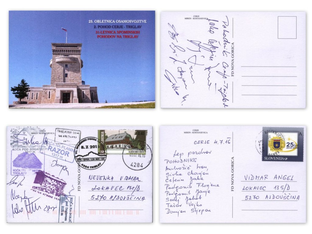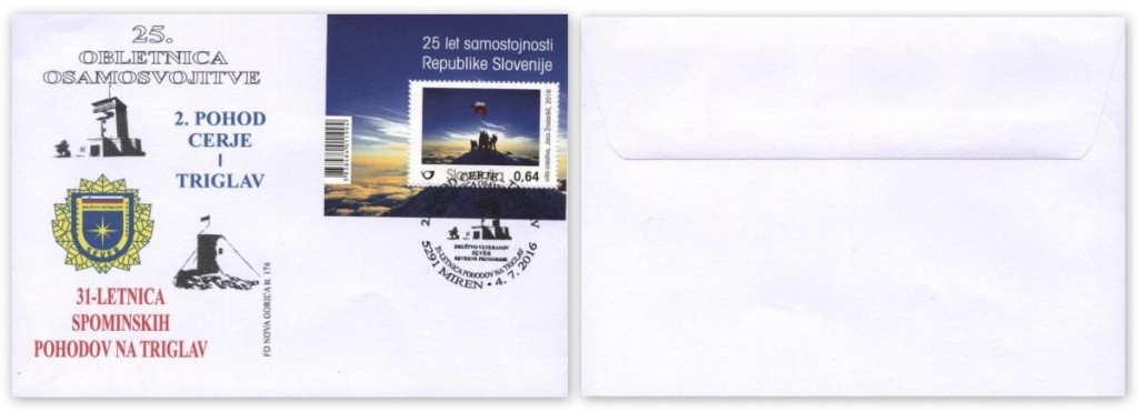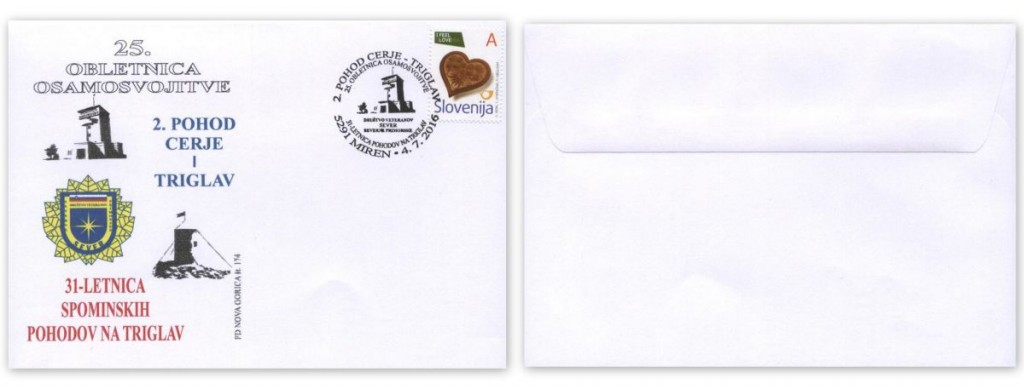 Pohodniki Cerje-Triglav so 2. pohod obeležili tudi z izdajo posebne spominske razglednice z motivom Cerja ter spominskih kuvert opremljenih z dotiskom. V uporabi je bil tudi posebni spominski poštni žig-5291, ki je bil 4/7-2016 na uporabi na pošti 5291 Miren.