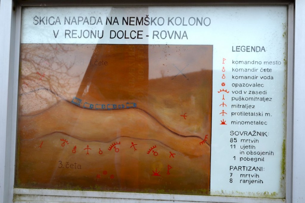 Napad se je zgodil 2. februarja 1944 leta prav na kraju slovesnosti med Komnom in Branikom v Dovcah. Partizanskemu odredu je poveljeval legendarni poveljnik in narodni heroj Anton Šibelja, partizansko ime Stjenka. Delegacije KO ZB za vrednote NOB so pred spomenik padlim partizanom položile vence in se poklonile z enominutnim molkom. Slovesnost je potekala pred obnovljenim spomenikom, ki so ga skupaj obnovili Občinsko združenje borcev za vrednote NOB Komen in Občinsko združenje borcev za vrednote NOB Nova Gorica. Slovesnosti sta sledila; pozdravni govor župana Občine Komen Marka BANDELLI. Slavnostni govornik, ki je zgodovinsko orisal dogajanja pred in med NOB na območju Krasa in Primorske s poudarkom na srčnost in junaštvo partizanov v tistem času pa je bil zgodovinar prof. dr. Borut KLABJAN. Program, ki ga je vodila in povezovala Bojana KERMOLJ so oblikovali Pevski zbor Jezero Doberdob s partizanskimi pesmimi, pevka Mateja PETELIN ob spremljavi Igorja ZOBINA in častna straža pripadnikov Slovenske vojske.