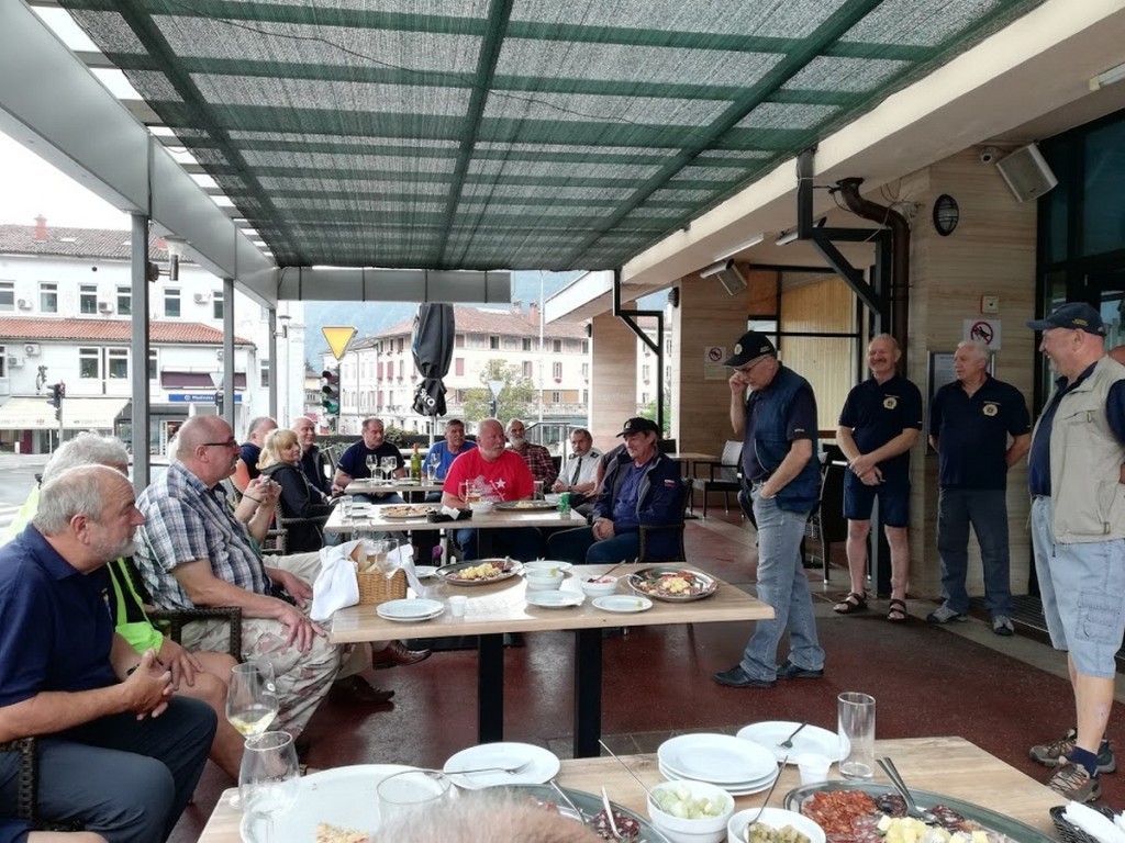 Ob 11.00 uri smo se vsi udeležili odkritja spominske plošče v Bači pri Modreju, ki je bila postavljena v spomin na dogodke iz 1. januarja 1945, ko so borci brigade »Guido PUCELLI« iz Jurišne divizije Garibaldi - Natisone, pod vodstvom Gina LOZZERO, prečkali po brvi »pri drozgu«, reko Bačo. V zasedi so jih pričakali nemški vojaki. V boju je padlo 17 partizanov, 23 pa so jih ujeli in odpeljali v izgnanstvo v Nemčijo. Po načrtu naj bi obiskali Javorco, vendar tega nismo izvedli zaradi slabega vremena. Odšli smo na bivši MMP Robič, kjer je ČETRTIČ Pavle predstavil dogodke na mejnem prehodu v času osamosvojitve. Ob povratku smo si v Kobaridu ogledali še razstavljeno obnovljeno vozilo Fiat 15 TER – Kadorna. Zaključek smo imeli v hali »Podgornik« na Logu v Tolminu, kjer smo si izmenjali darila in se še nekaj časa družili. Razšli smo se z obljubo, da se naslednje leto ponovno srečamo.