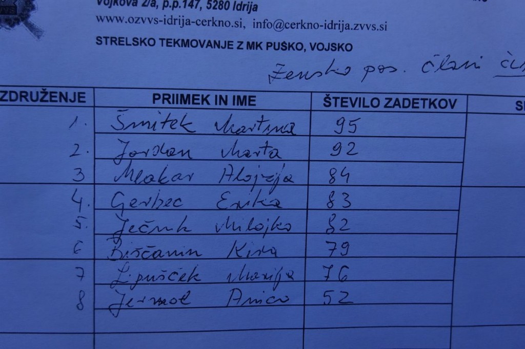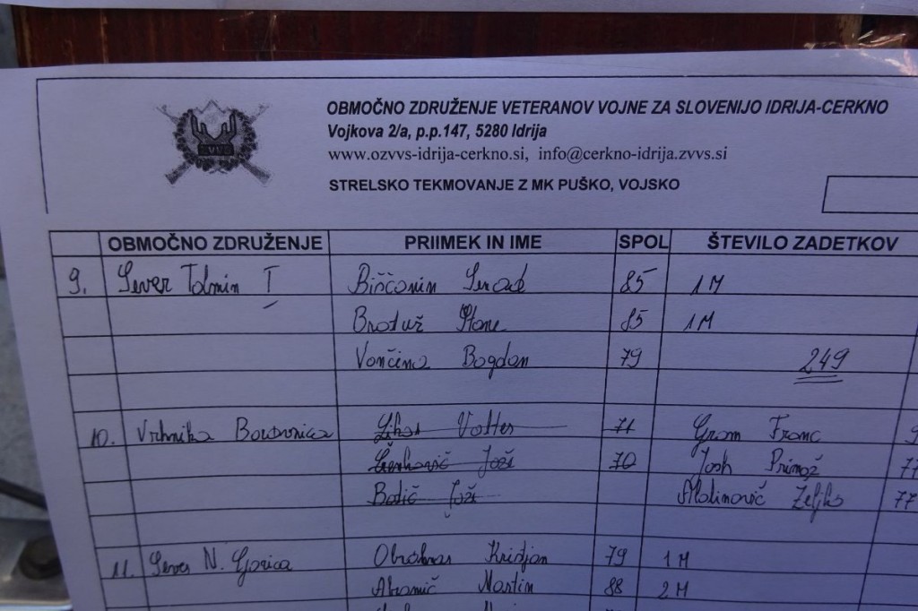 V soboto, 29.06.2019, so se štiri ekipe našega društva udeležile tekmovanja v streljanju z malokalibrsko puško na Vojskem v organizaciji OZVVS Idrija – Cerkno. Ekipa SEVER Tolmin 1 (BIŠĆANIN, BRATUŽ, VONČINA) je zasedla 9 mesto z 249 krogi, ekipa SEVER Nova Gorica (SIVKA, ABRAMIČ, OBREKAR) 11 mesto z 240 krogi, sledili sta ekipi SEVER Tolmin 2 (GERBEC I., LIPUŠČEK L., ŠULIGOJ) z 240 krogi in SEVER Tolmin 3 (GERBEC E., LIPUŠČEK M., TALJAT BIŠĆANIN K.) z 238 krogi med 20 ekipami.